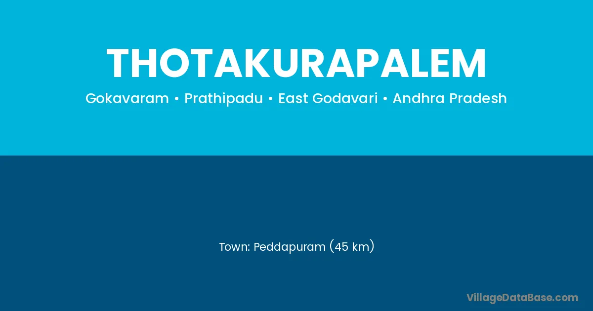 Peddapuram (45 km) is the nearest town to Thotakurapalem village for major economic activities and is located approximately 45 km away.