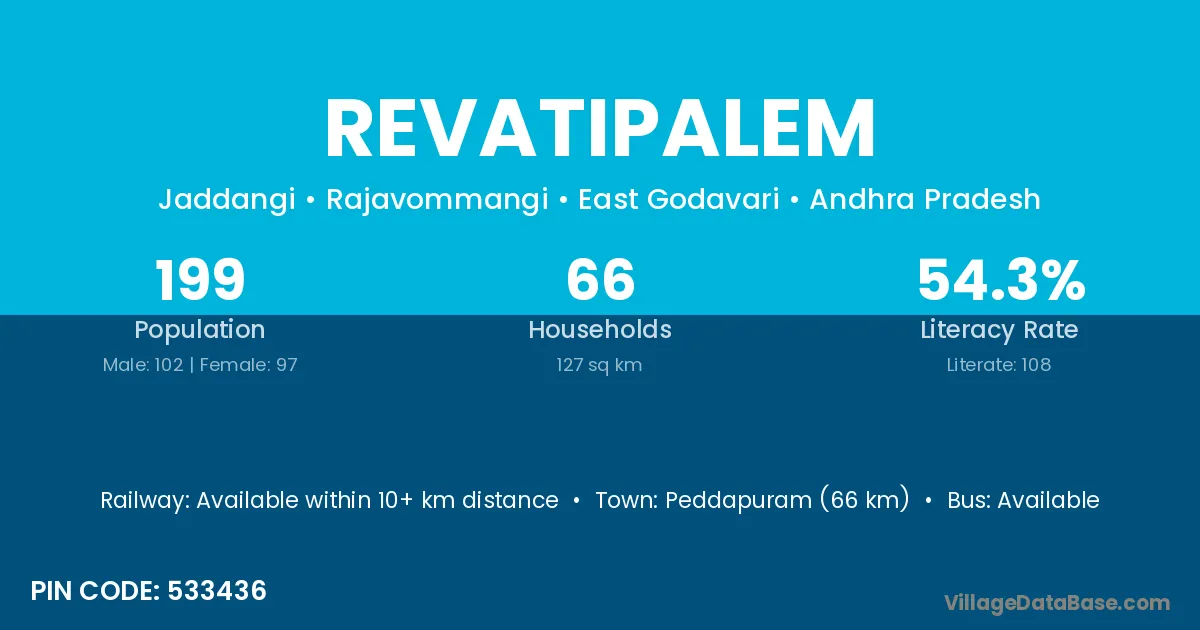According to Census 2011 information, the village code of Revatipalem village is 533436.