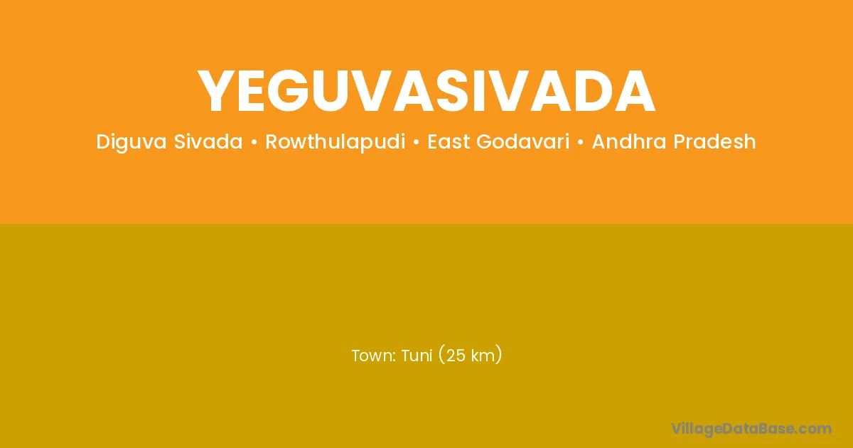 Tuni (25 km) is the nearest town to Yeguvasivada village for major economic activities and is located approximately 25 km away.