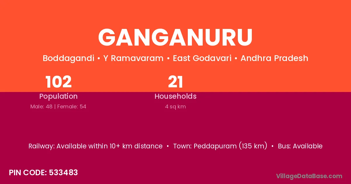 Peddapuram (135 km) is the nearest town to Ganganuru village for major economic activities and is located approximately 135 km away.