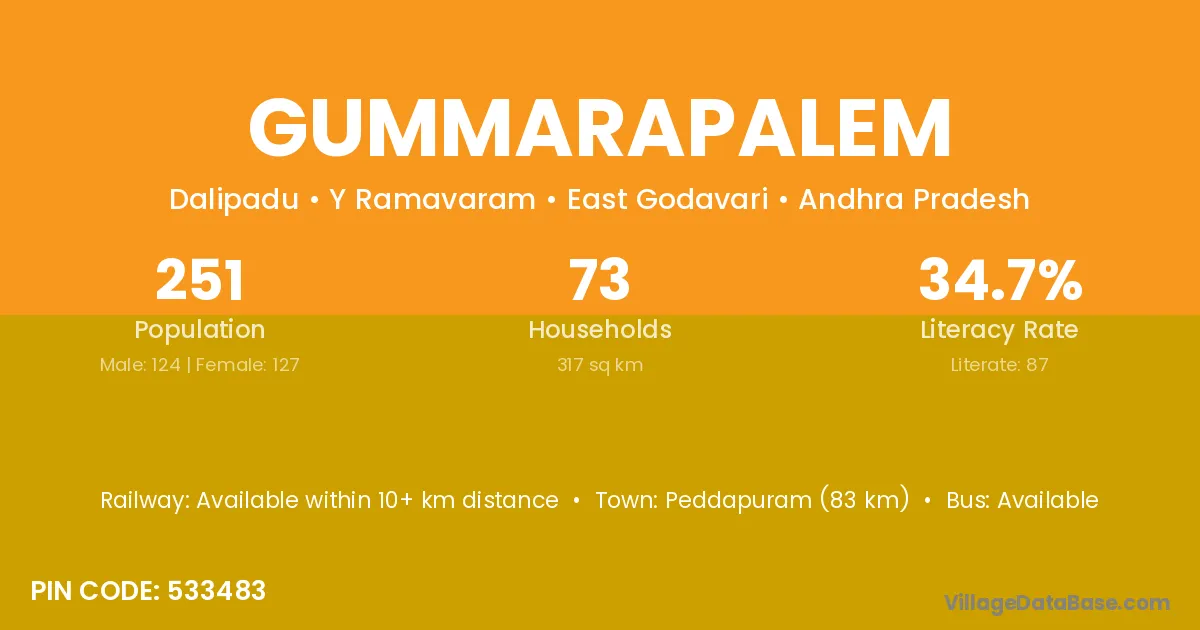 According to Census 2011 information, the village code of Gummarapalem village is 533483.