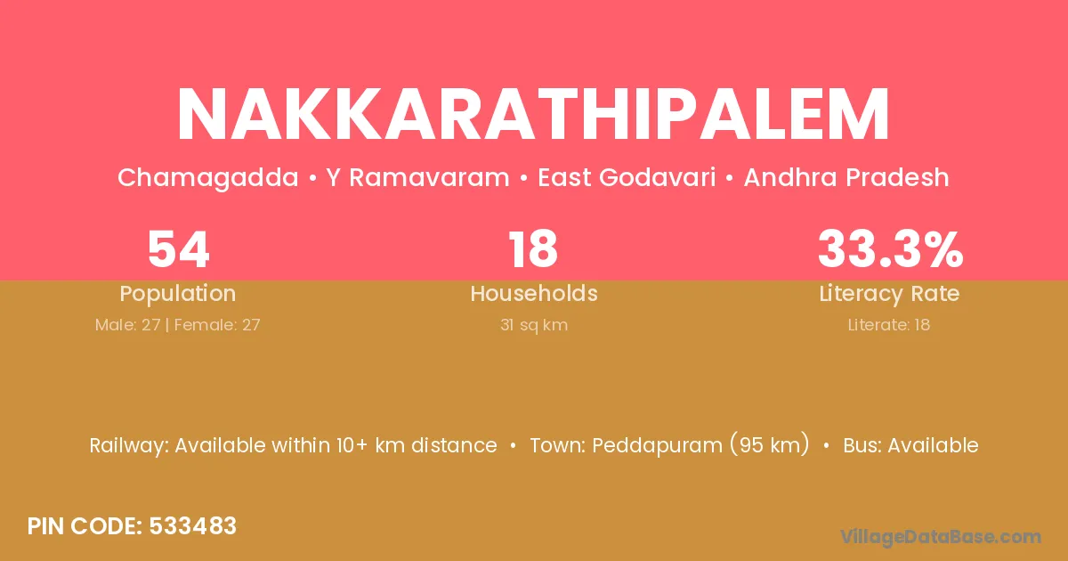 According to Census 2011 information, the village code of Nakkarathipalem village is 533483.