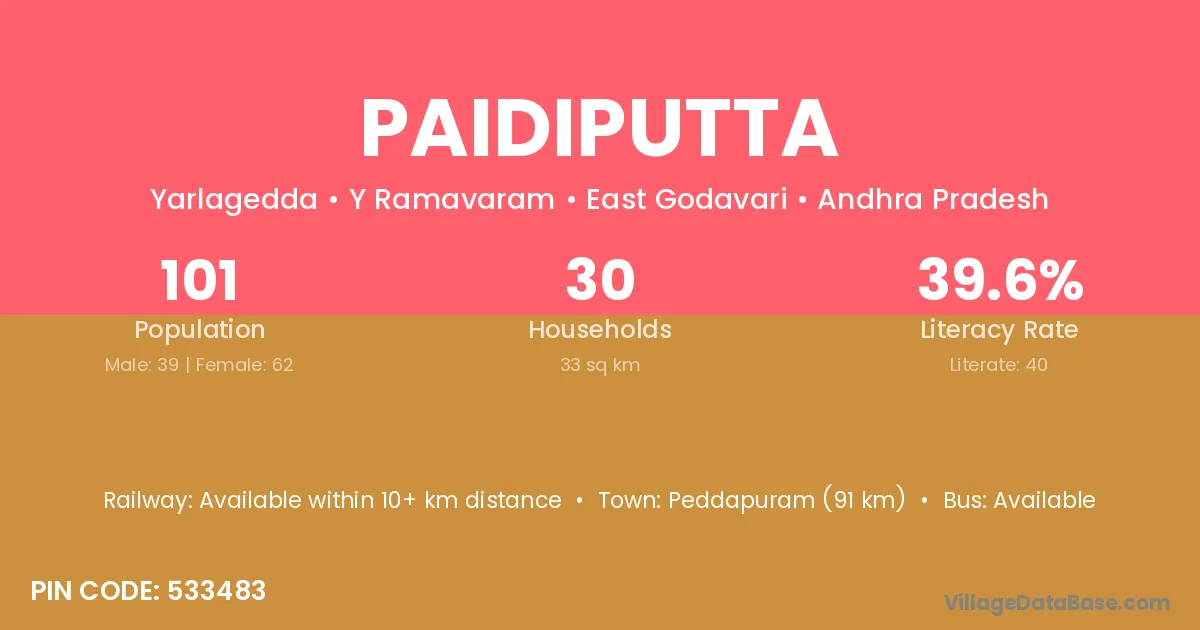 According to Census 2011 information, the village code of Paidiputta village is 533483.