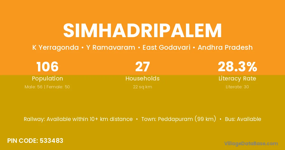 According to Census 2011 information, the village code of Simhadripalem village is 533483.