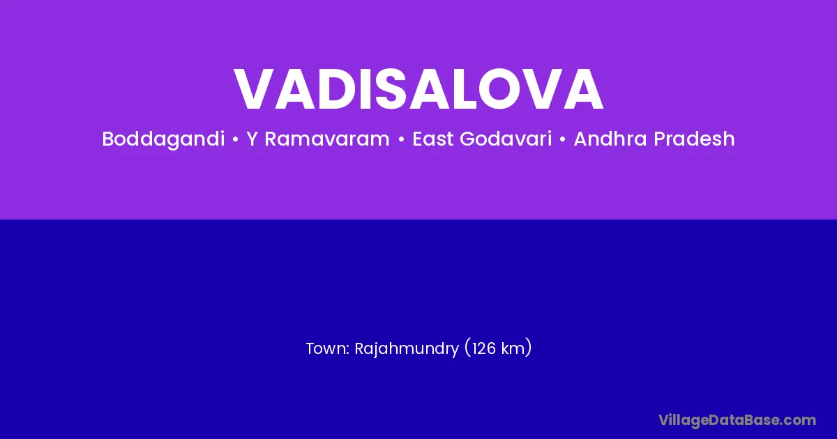 Rajahmundry (126 km) is the nearest town to Vadisalova village for major economic activities and is located approximately 126 km away.