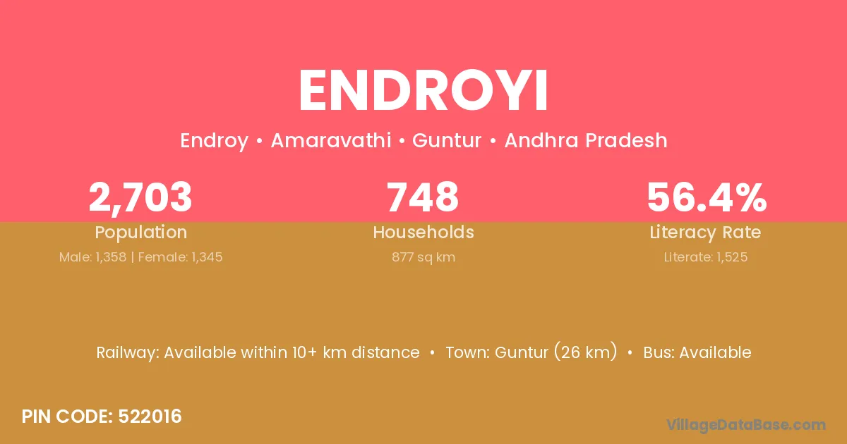According to Census 2011 information, the village code of Endroyi village is 522016.