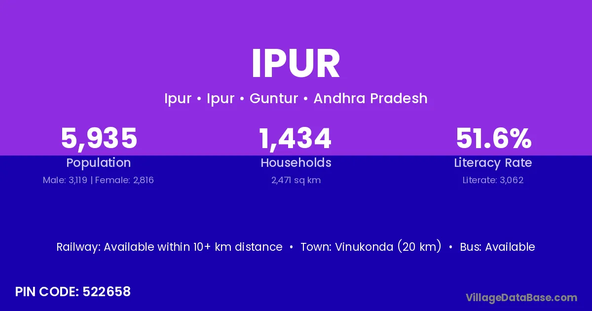 According to Census 2011 information, the village code of Ipur village is 522301.