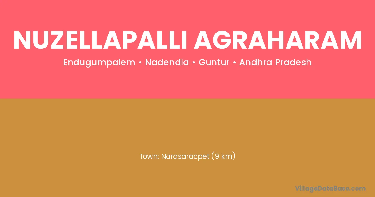 Narasaraopet (9 km) is the nearest town to Nuzellapalli Agraharam village for major economic activities and is located approximately 9 km away.