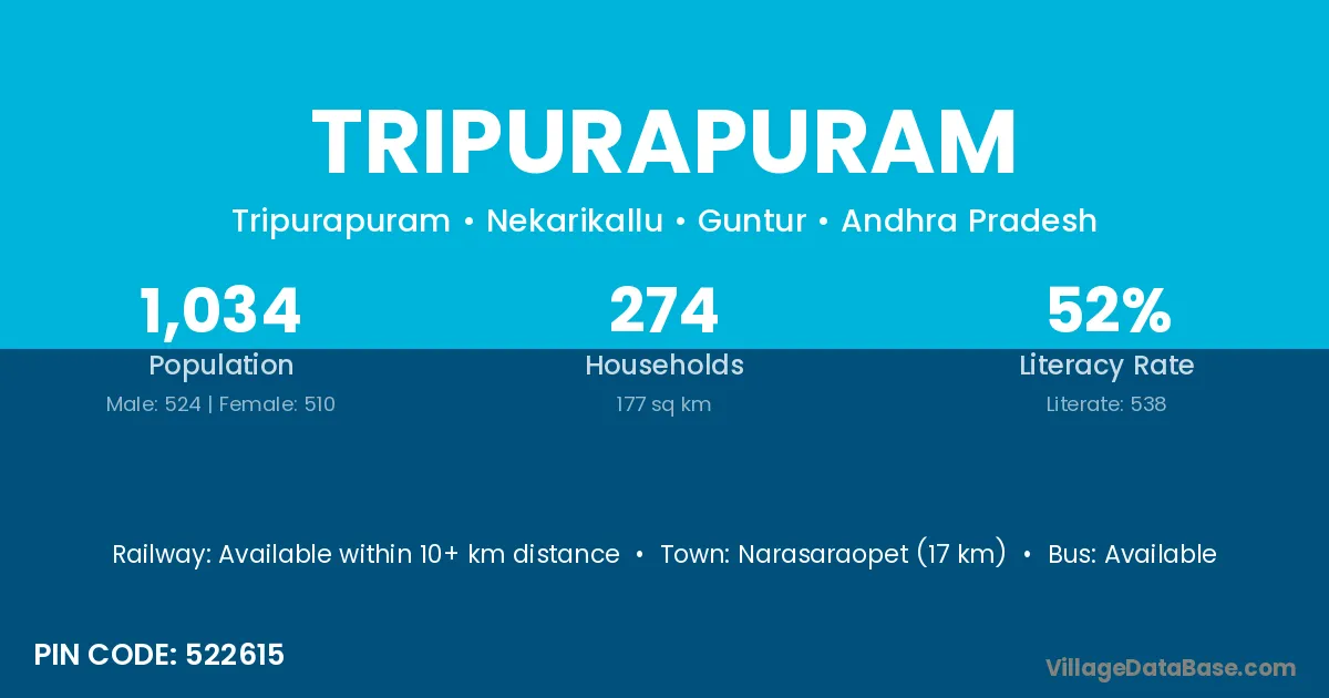 According to Census 2011 information, the village code of Tripurapuram village is 522660.