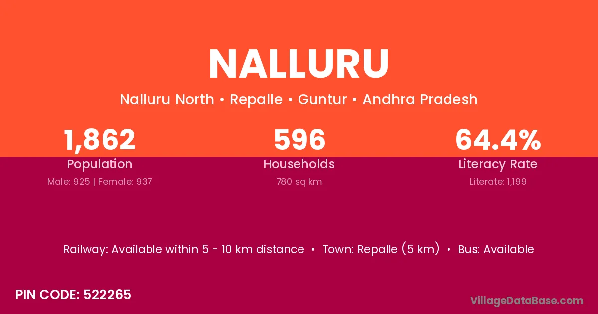 Repalle (5 km) is the nearest town to Nalluru village for major economic activities and is located approximately 5 km away.