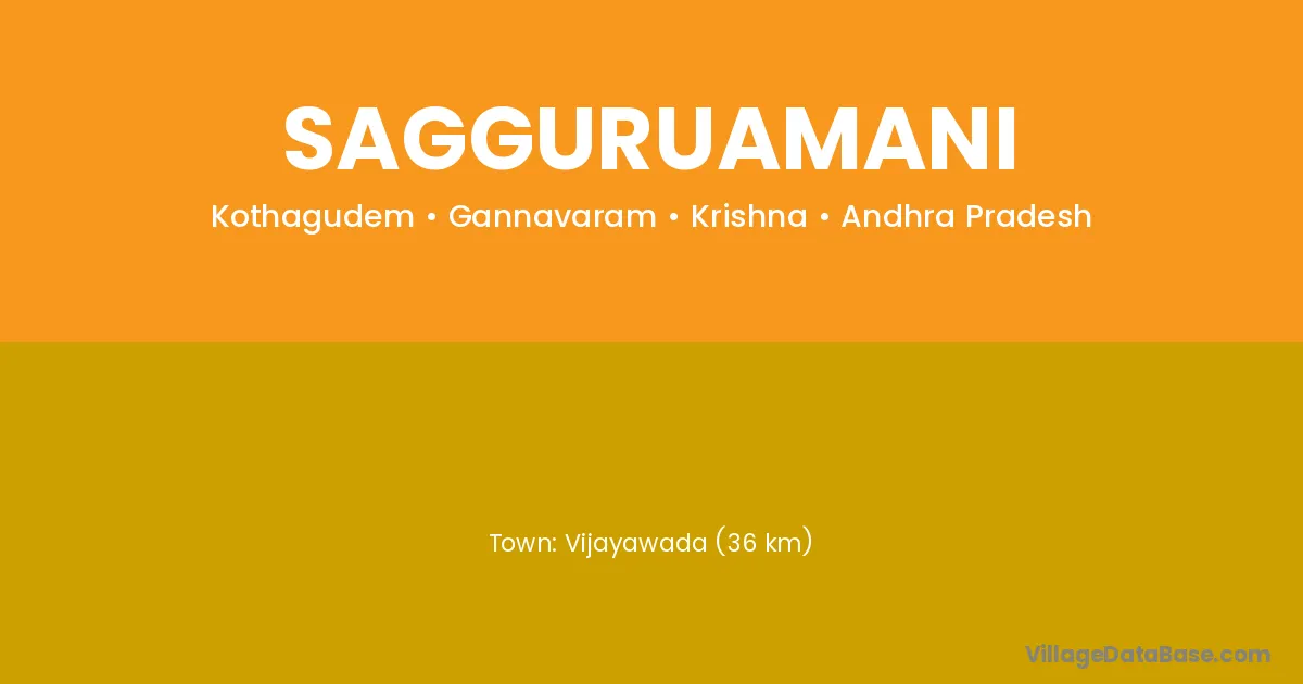 Vijayawada (36 km) is the nearest town to Sagguruamani village for major economic activities and is located approximately 36 km away.