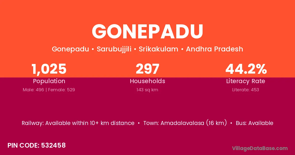 Gonepadu village has a total population of 1,088 people, of which 540 are males and 548 are females.