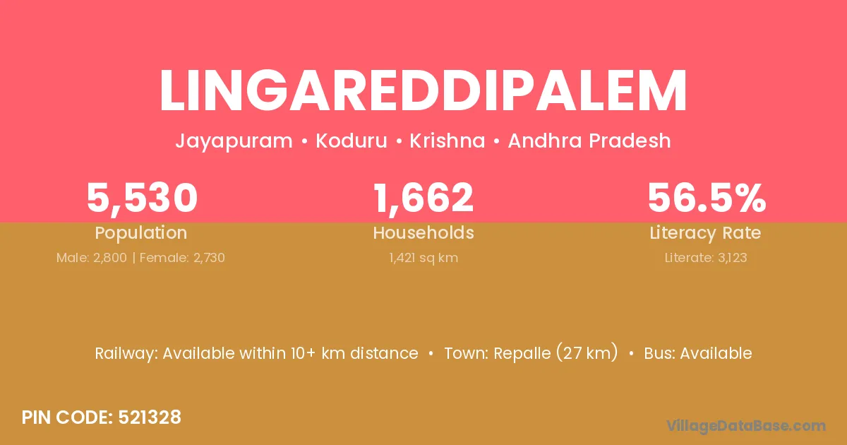 According to Census 2011 information, the village code of Lingareddipalem village is 521328.