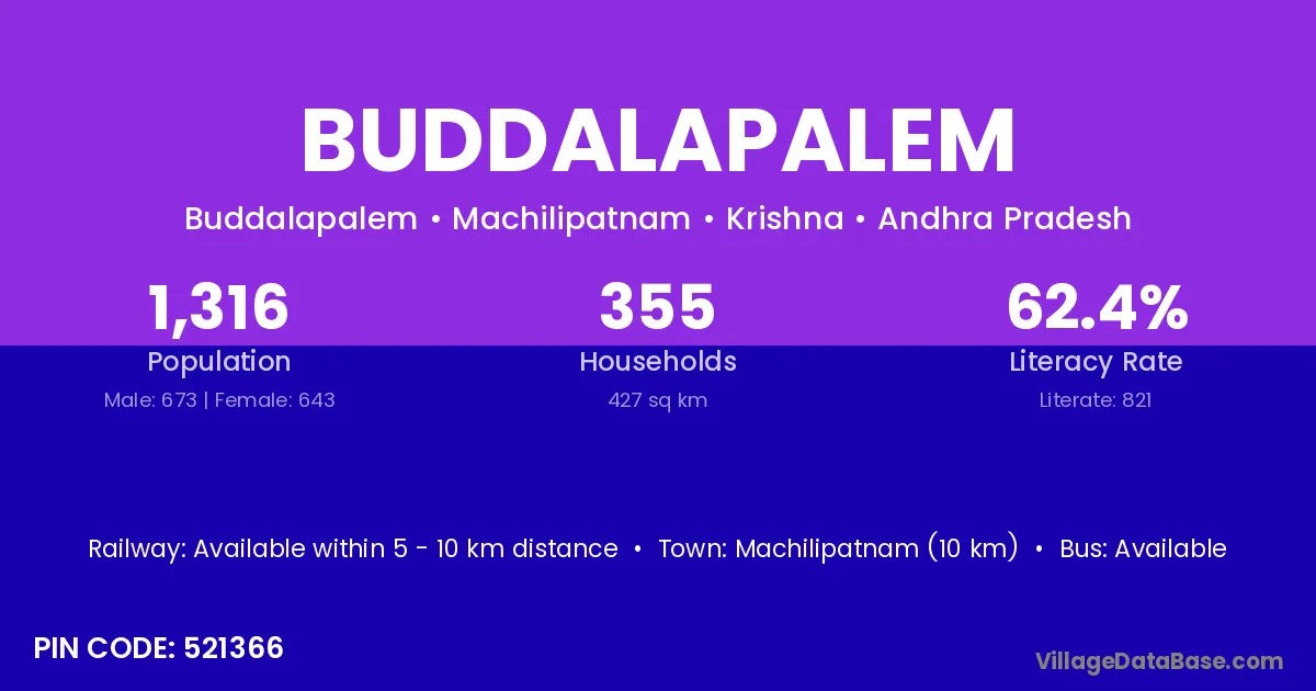 According to Census 2011 information, the village code of Buddalapalem village is 521366.