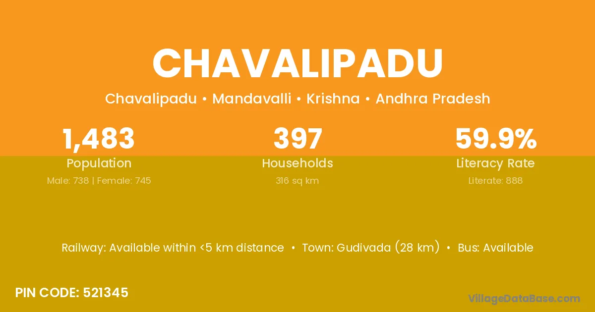 Chavalipadu village has a total population of 1,483 people, of which 738 are males and 745 are females.