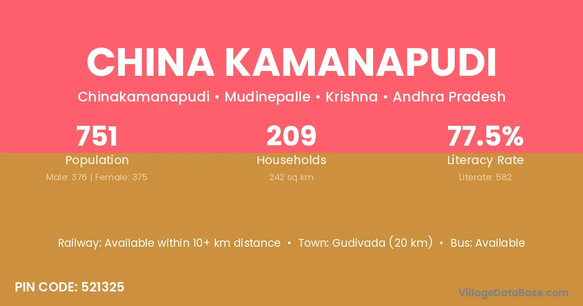 China Kamanapudi village has a total population of 751 people, of which 376 are males and 375 are females.