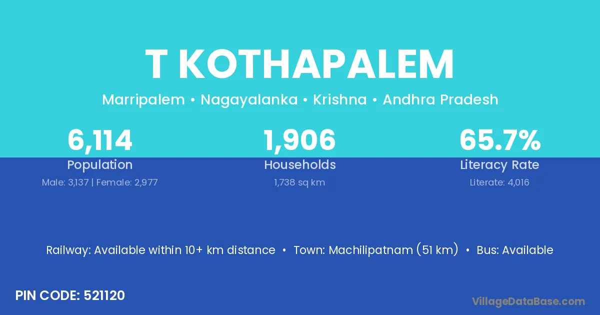 According to Census 2011 information, the village code of T Kothapalem village is 521120.