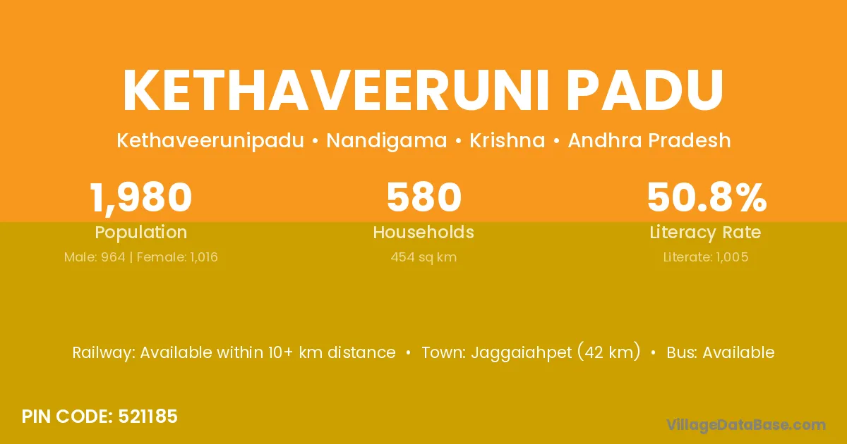 Kethaveeruni Padu village has a total population of 1,980 people, of which 964 are males and 1,016 are females.