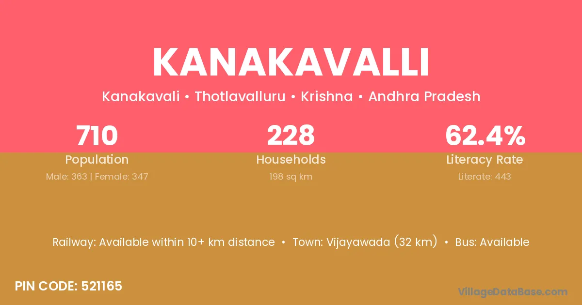 Kanakavalli village has a total population of 710 people, of which 363 are males and 347 are females.