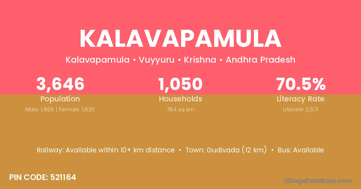 According to Census 2011 information, the village code of Kalavapamula village is 521164.