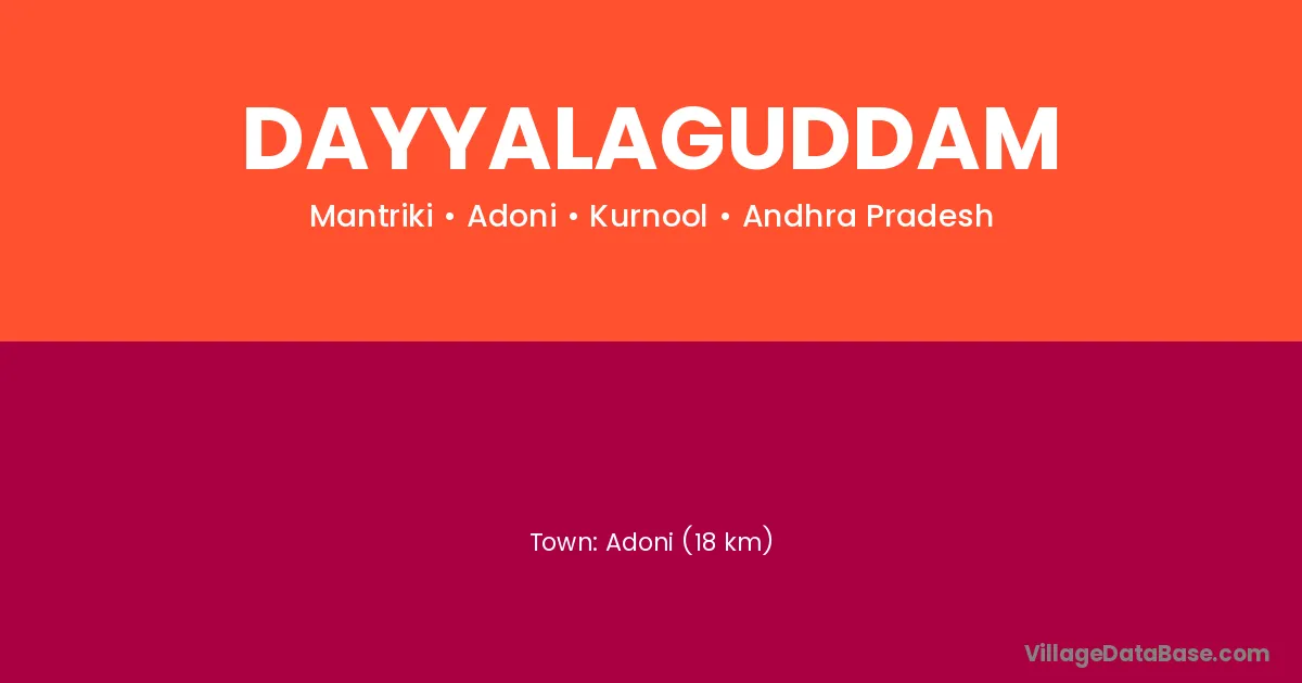 Adoni (18 km) is the nearest town to Dayyalaguddam village for major economic activities and is located approximately 18 km away.