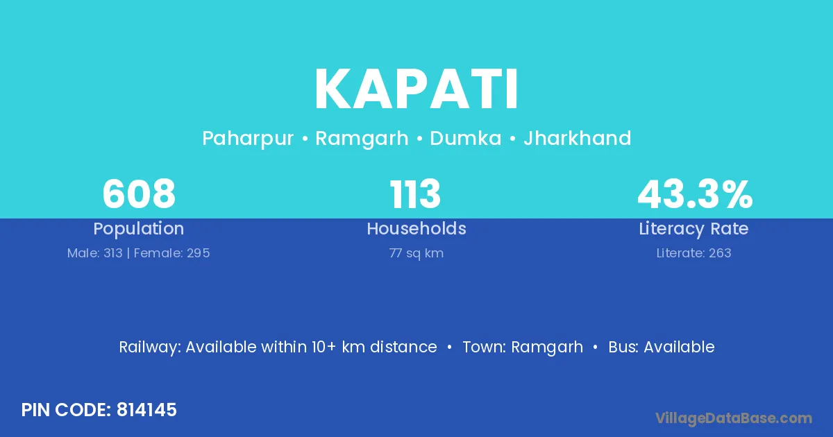 Kapati village has a total population of 3,675 people, of which 1,856 are males and 1,819 are females.