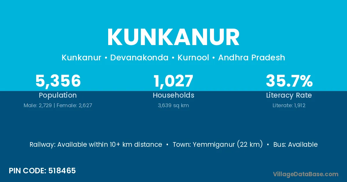 Kunkanur village has a total population of 5,356 people, of which 2,729 are males and 2,627 are females.