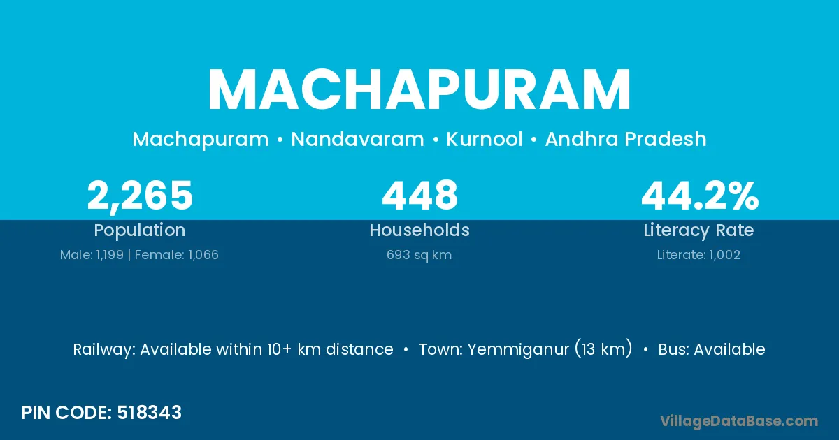 Yemmiganur (33 km) is the nearest town to Machapuram village for major economic activities and is located approximately 33 km away.