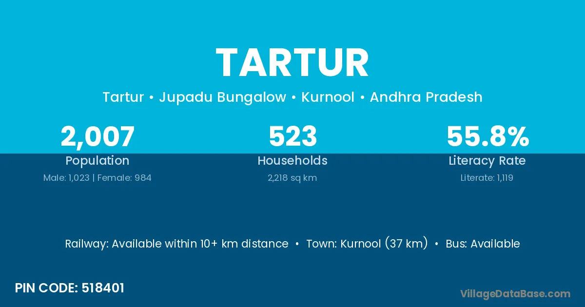 Kurnool (37 km) is the nearest town to Tartur village for major economic activities and is located approximately 37 km away.