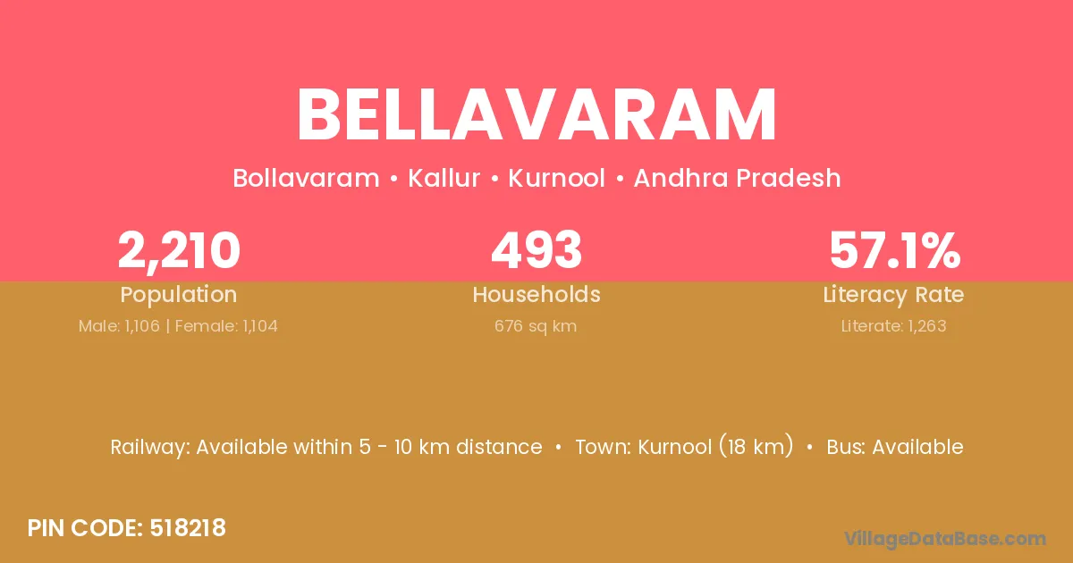 Kurnool (18 km) is the nearest town to Bellavaram village for major economic activities and is located approximately 18 km away.