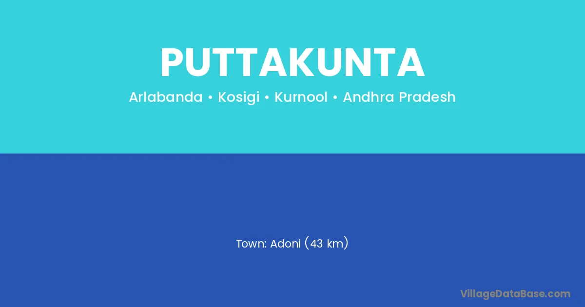 Adoni (43 km) is the nearest town to Puttakunta village for major economic activities and is located approximately 43 km away.