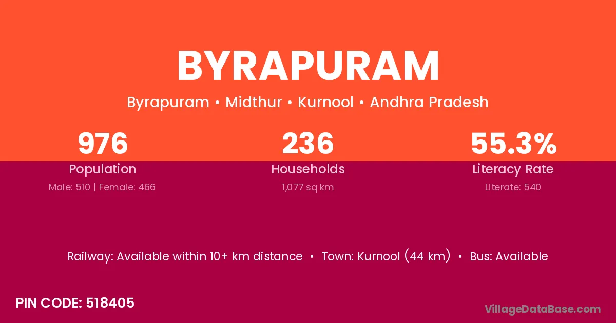 Byrapuram village has a total population of 976 people, of which 510 are males and 466 are females.