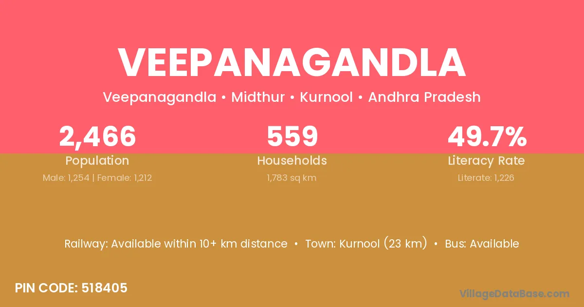Kurnool (23 km) is the nearest town to Veepanagandla village for major economic activities and is located approximately 23 km away.
