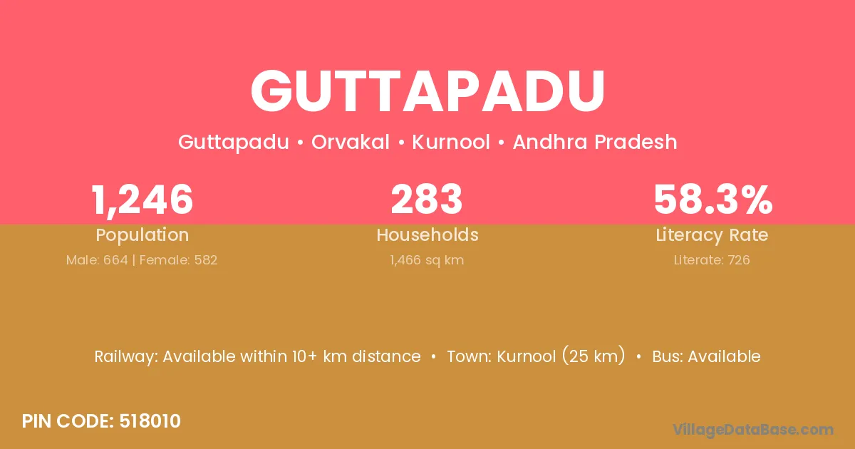 Kurnool (25 km) is the nearest town to Guttapadu village for major economic activities and is located approximately 25 km away.