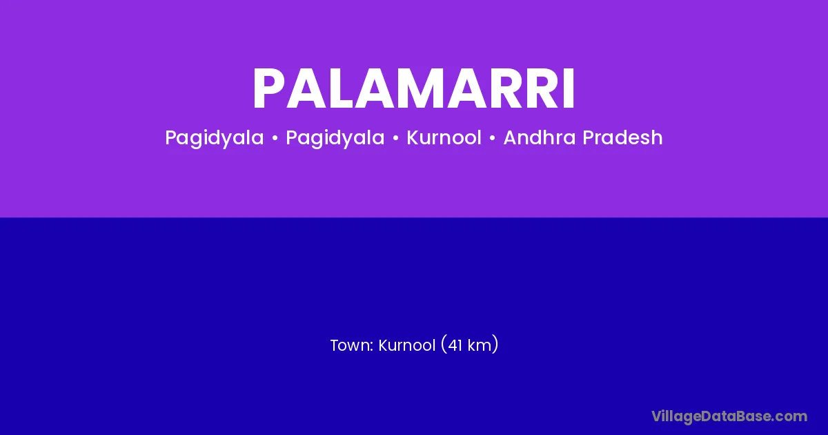 Kurnool (41 km) is the nearest town to Palamarri village for major economic activities and is located approximately 41 km away.