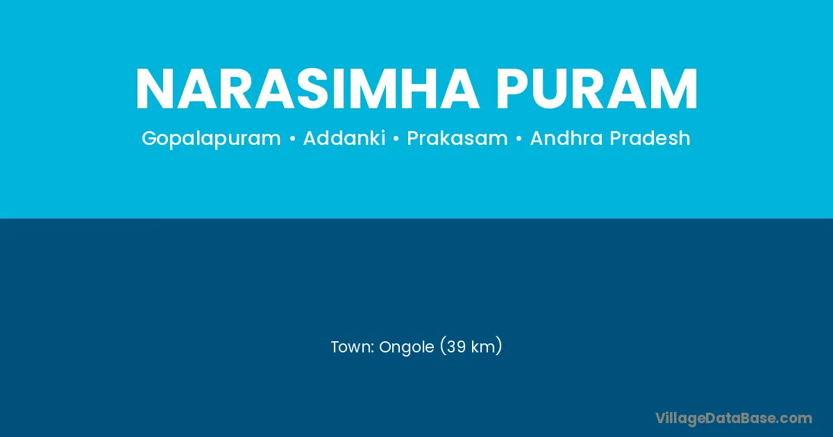 Ongole (39 km) is the nearest town to Narasimha Puram village for major economic activities and is located approximately 39 km away.