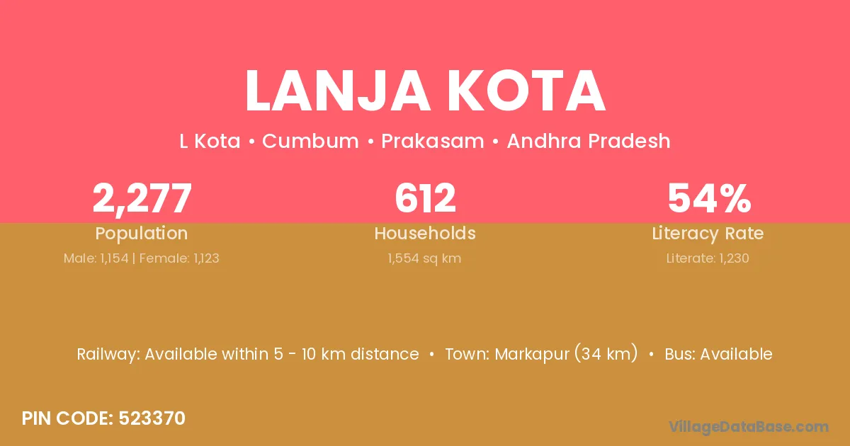 According to Census 2011 information, the village code of Lanja Kota village is 523370.
