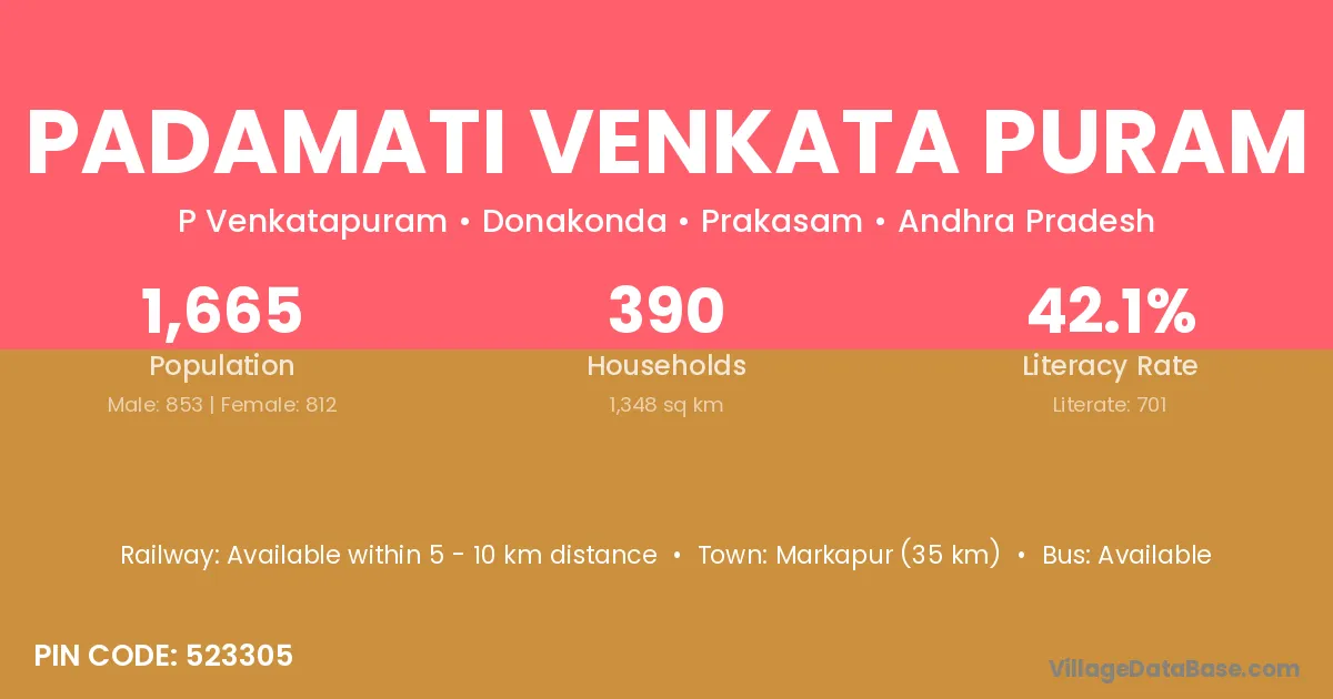 Markapur (35 km) is the nearest town to Padamati Venkata Puram village for major economic activities and is located approximately 35 km away.
