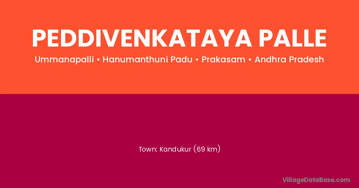 Kandukur (69 km) is the nearest town to Peddivenkataya Palle village for major economic activities and is located approximately 69 km away.