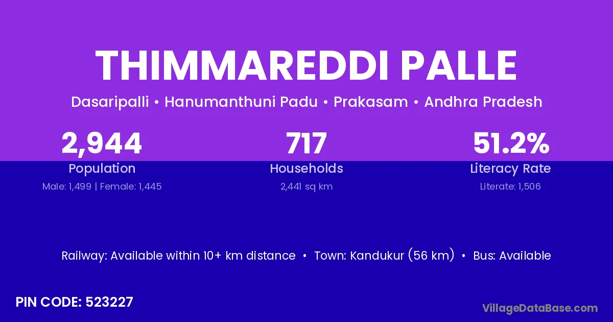 According to Census 2011 information, the village code of Thimmareddi Palle village is 523227.