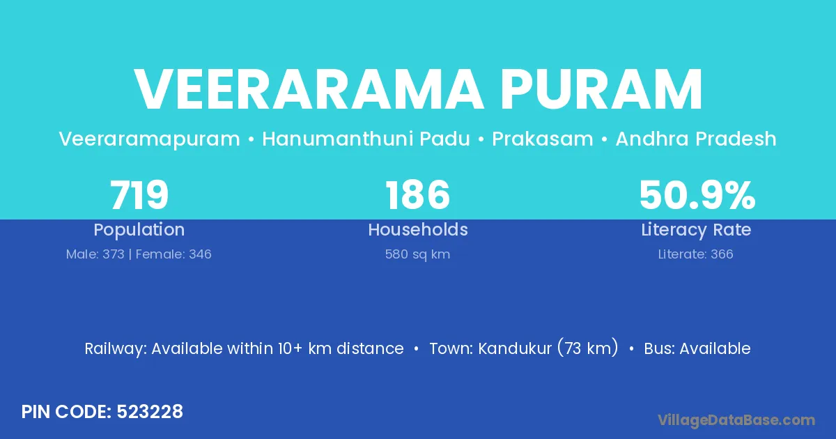 Veerarama Puram village has a total population of 719 people, of which 373 are males and 346 are females.
