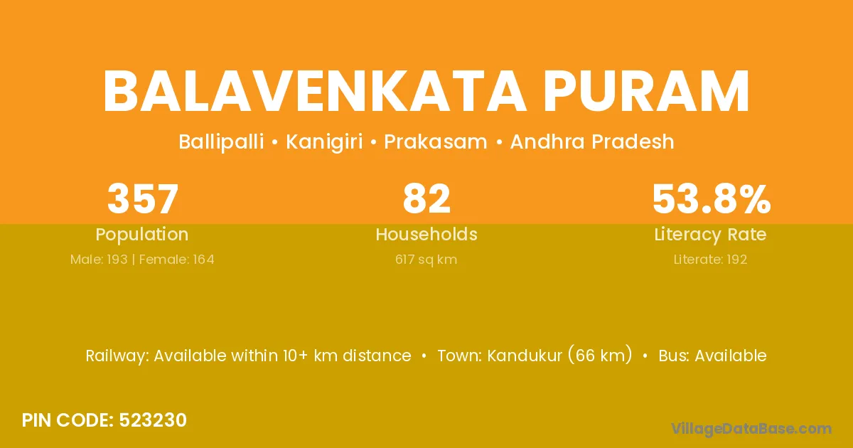 According to Census 2011 information, the village code of Balavenkata Puram village is 523230.
