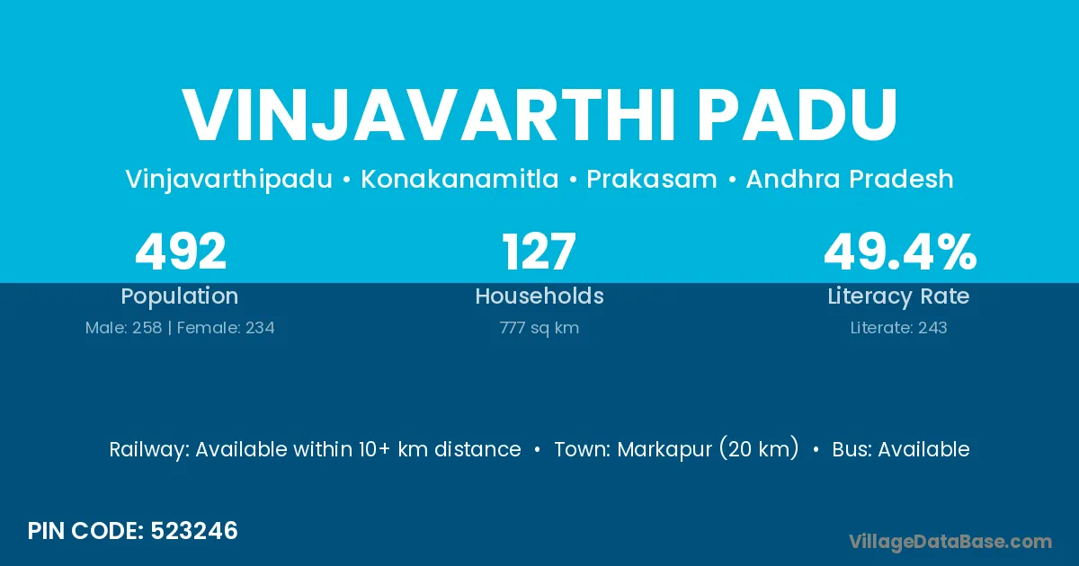 Vinjavarthi Padu village has a total population of 492 people, of which 258 are males and 234 are females.