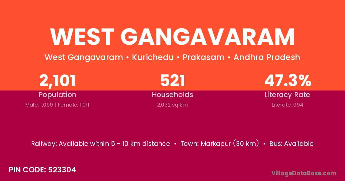 According to Census 2011 information, the village code of West Gangavaram village is 523304.