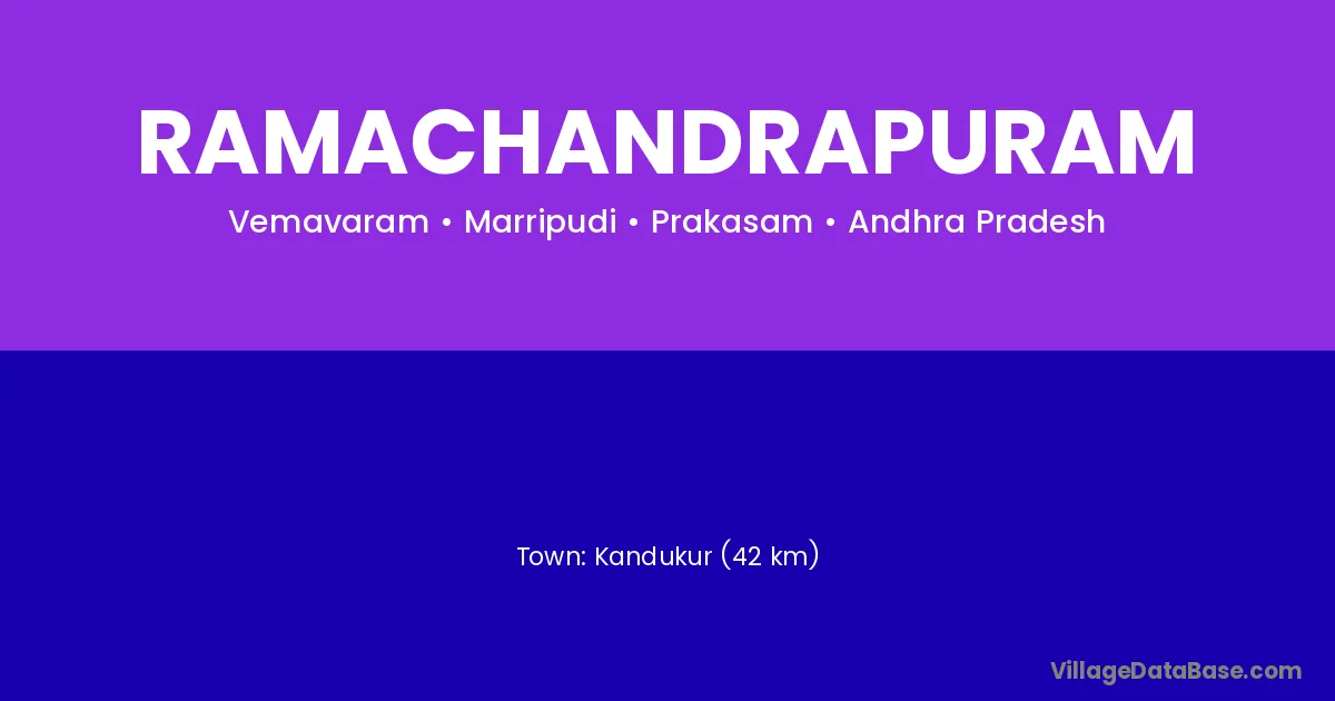 Kandukur (42 km) is the nearest town to Ramachandrapuram village for major economic activities and is located approximately 42 km away.