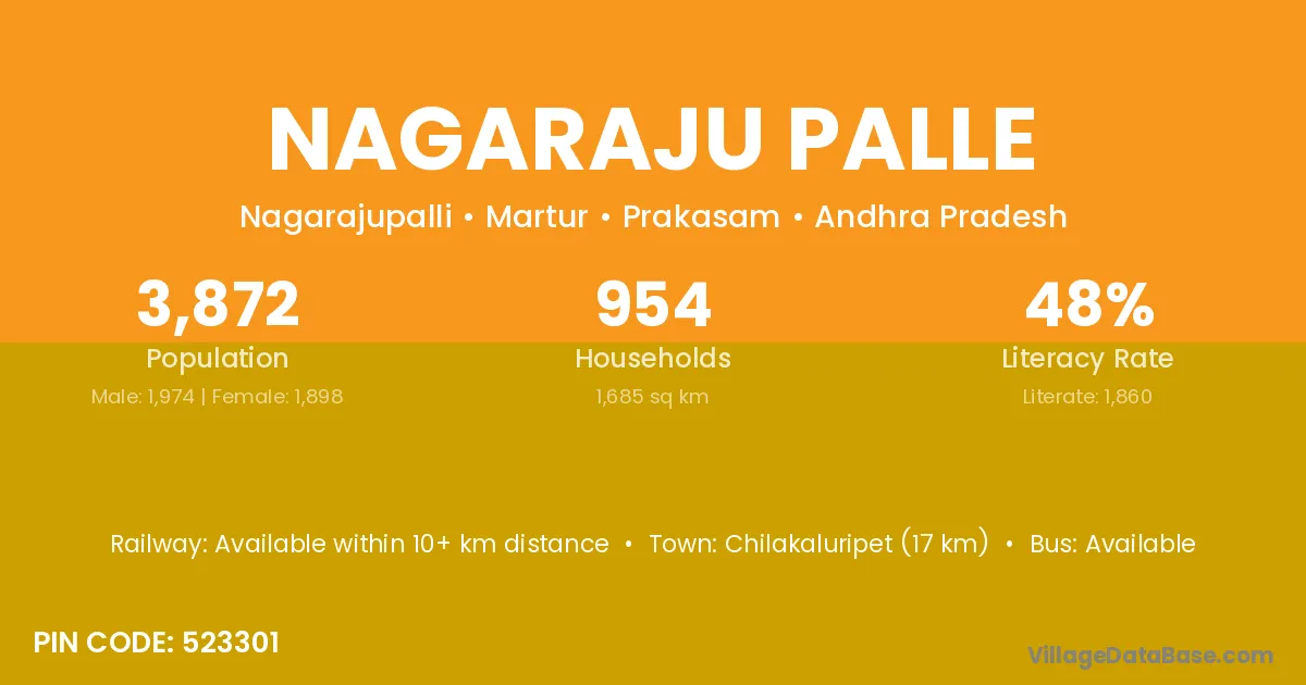 Nagaraju Palle village has a total population of 3,872 people, of which 1,974 are males and 1,898 are females.