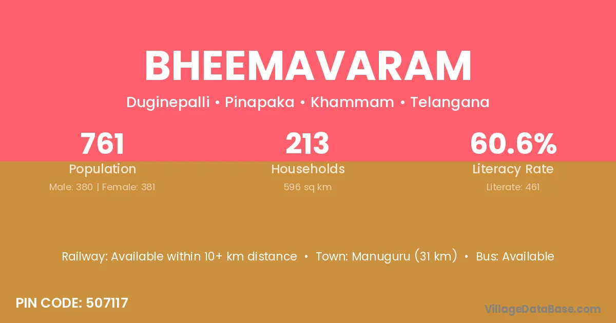 Vinukonda (22 km) is the nearest town to Bheemavaram village for major economic activities and is located approximately 22 km away.