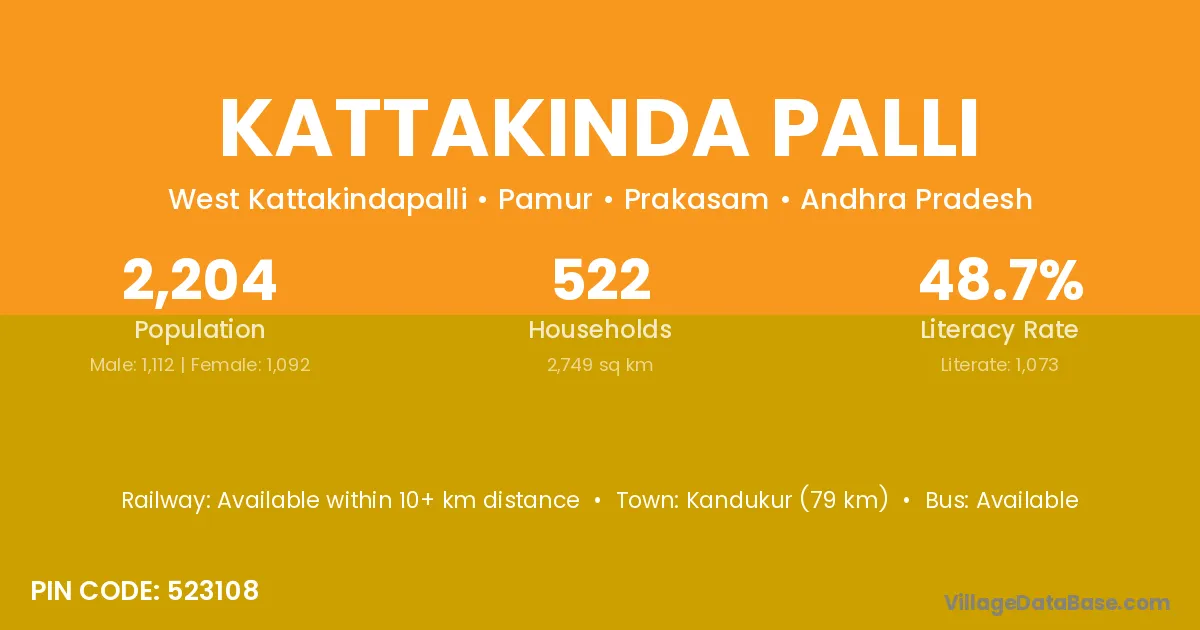 According to Census 2011 information, the village code of Kattakinda Palli village is 523108.