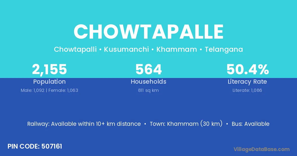 Markapur (65 km) is the nearest town to Chowtapalle village for major economic activities and is located approximately 65 km away.