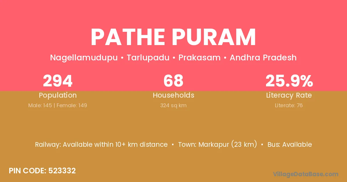 Pathe Puram village has a total population of 294 people, of which 145 are males and 149 are females.